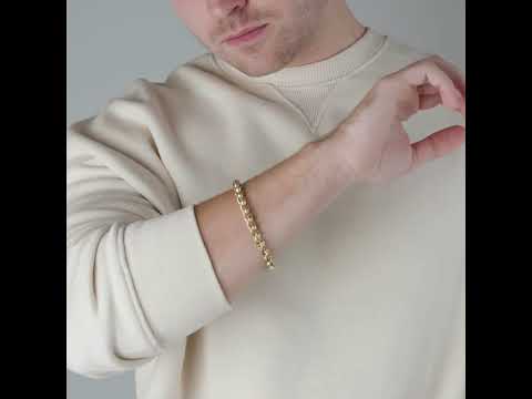 Crafted for men who appreciate refined luxury and enduring style, this bracelet offers a substantial feel on the wrist while maintaining a sleek, classic silhouette. At 9 inches long, it provides a comfortable fit for most gents’ wrists.