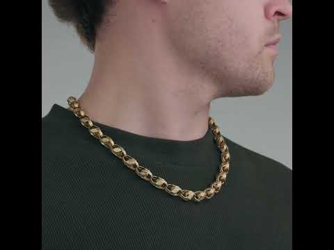 Upgrade your collection with this solid 9ct gold tulip chain, a heavyweight, British-made statement piece crafted for those who value luxury, strength, and timeless design. Featuring ornate tulip-inspired links, this 9.5mm wide and 9.5mm thick gold chain offers a commanding yet refined presence, distinguished by flawless symmetry and high-detail craftsmanship.