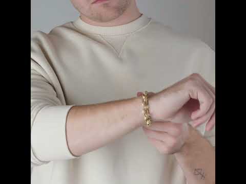 Crafted from solid 9ct yellow gold, this 9mm-wide, 4mm-thick oval Belcher bracelet features fully engraved ornate floral patterns on each link for a unique, refined look. Made in Britain with a polished finish and a secure matching clasp, it combines durability with timeless style.