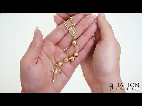 A classic Catholic design, these Rosary Beads are crafted from 9ct yellow gold. Featuring a traditional solid Mary pendant and a Crucifix.