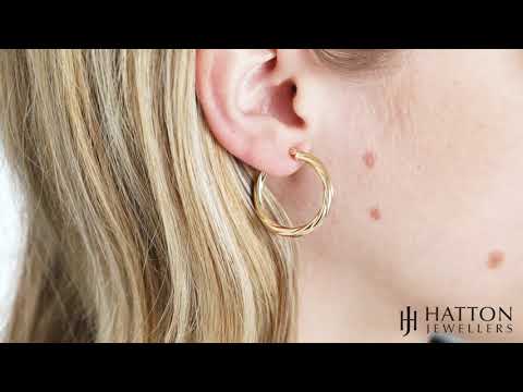 This stylish pair of twisted hoop earrings are a true classic and made from 9ct yellow gold. The hollow tube design makes them comfortable and perfect to wear for all occasions. Featuring a secure hinged fastening with a snap closure.