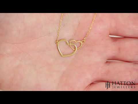 Italian-made from 9ct yellow gold. This necklace features two open interlocking hearts attached to the necklace. Adjustable to two different lengths - 17" & 18". Stamped with a full British hallmark to confirm the 9ct purity.