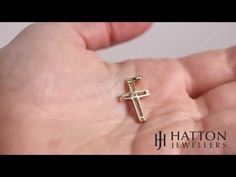 Created from 9ct yellow & white gold, this stunning cross has been manufactured in Italy. Italian Jewellery is world-renowned as being the finest quality and this can be seen for this product. A small flat polished design, with a beautifully set Cubic Zirconia gemstone to the center. A full British hallmark stamp is included to confirm the solid gold purity. Please note that the height measurement advertised includes the top link.