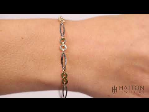 9ct Yellow & White Gold Fancy Link Bracelet - 4mm - 7" - Ladies