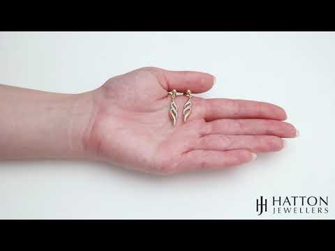A fancy pair of 9ct yellow and white gold twisted drop earrings. Comfortable and perfect to wear for all occasions. Featuring a secure post and butterfly back fastening.