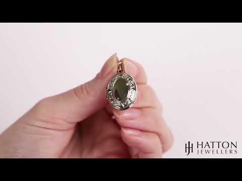 9ct Yellow & White Gold Floral Pattern Oval Locket Pendant - 28mm