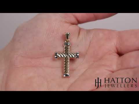 9ct Yellow & White Gold Polished Twist Design Cross Pendant - 36mm