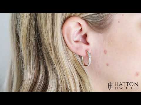 A 9ct yellow gold pair of hoop earrings featuring a stylish textured glitter design. Comfortable and perfect to wear for all occasions. Featuring a secure hinged fastening with a snap closure. A full British hallmark is located on fastening wires which confirms the gold purity.
